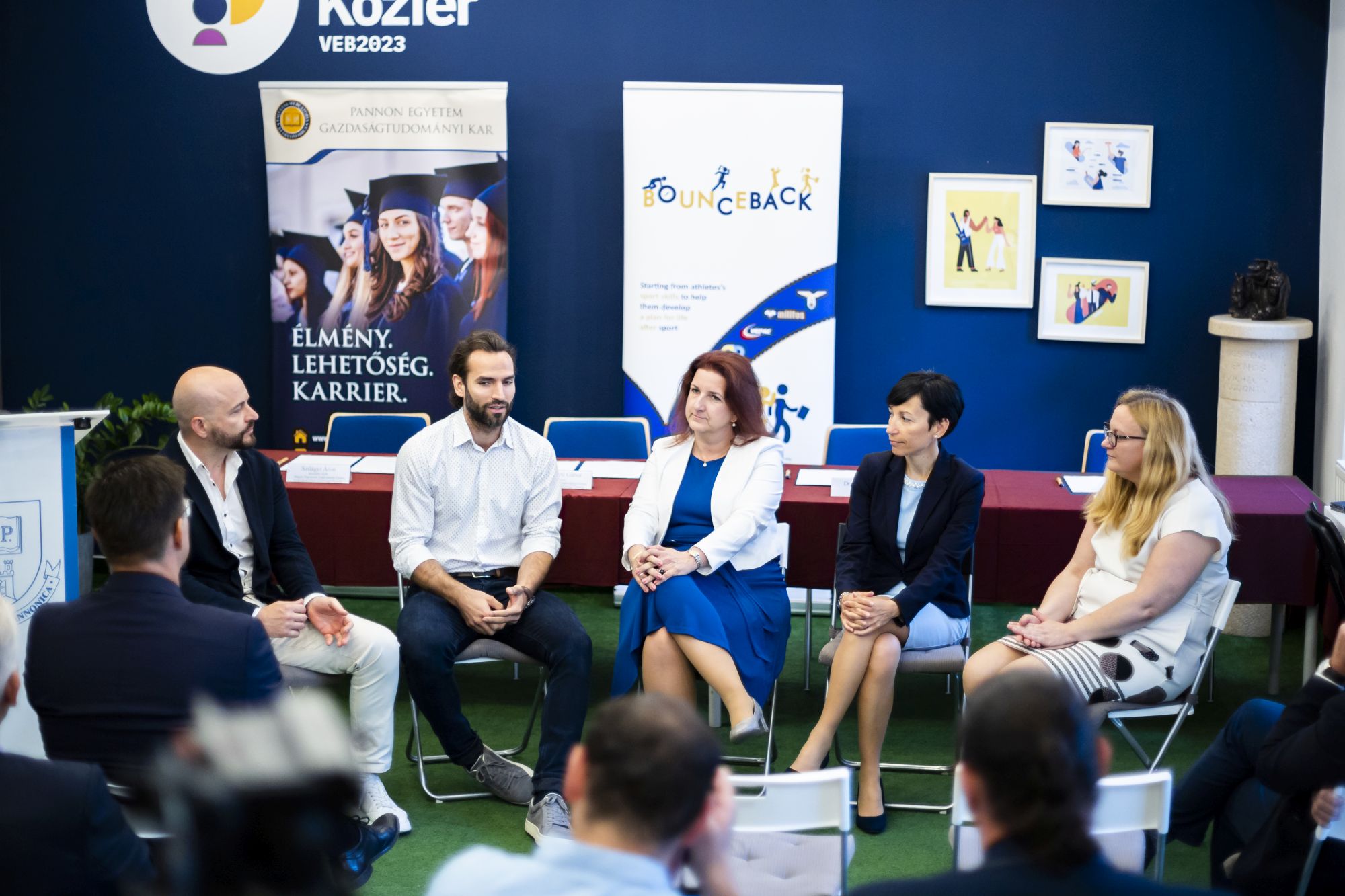 A Pannon Egyetem vezetése nevében Dr. Abonyi János rektorhelyettes köszöntötte a résztvevőket. Hangsúlyozta, hogy a tudomány, a művészet és a sport területén tapasztaljuk meg leginkább azt, hogy a kiemelkedő teljesítmény rendkívül nagy áldozatokkal jár. Aki belevág a sportba és rááldozza a fiatalságát, annak fel kell készülnie arra, hogy 35-40 éves korára egy új karriert kell indítania. Nagyon fontos, hogy ne csak örüljünk az élsportolók eredményeinek, hanem társadalmilag felelősséget vállaljunk, segítsük őket abban, hogy felkészüljenek az újabb karrierjükre. Ezt a komoly feladatot az Európai Bizottság is felismerte, erre kiváló példa a Bounceback projekt, melynek méltó folytatása a Magyar Élsportolók Érdekvédelmi Fórumával történő együttműködés, mely számos lehetőséget kínál az egyetem számára, például a hallgatóknak tudományos diákköri munkák, szakdolgozat- és diplomatémák biztosításával, középiskolások számára versenyek szervezésével, továbbá az intézmény azon stratégiai célkitűzéséhez is hozzájárul, hogy a sporttudomány területén is meghatározó szereplővé váljon.